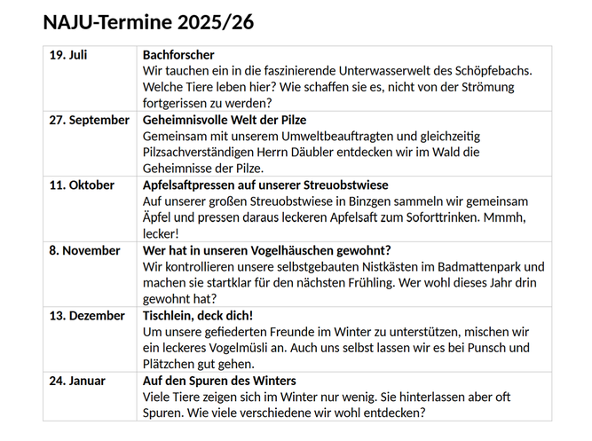 Wolltest du schon immer selbst einen Nistkasten bauen und Vögel an ihrer Stimme erkennen können? Würdest du gerne aus selbst gesammelten Äpfeln eigenen, leckeren Apfelsaft pressen und dir schmecken lassen? Möchtest du gerne in das Leben in einem klaren Bach eintauchen und die faszinierende Tierwelt darin entdecken? Willst du neue, naturbegeisterte Freunde kennenlernen und mit ihnen gemeinsam eine gemütliche Stockhütte im Wald bauen?